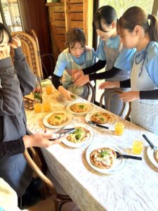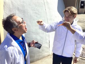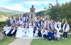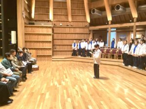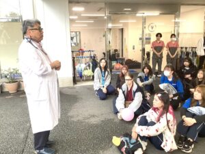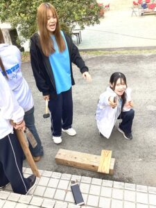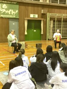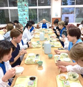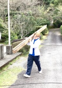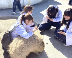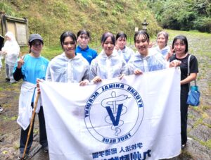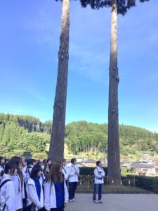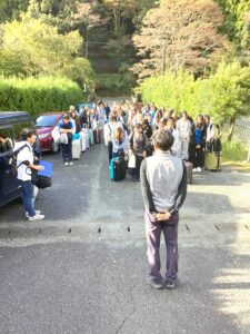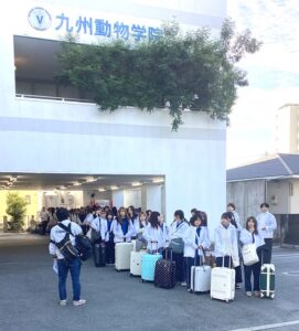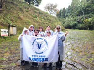 九州動物学院では、10月28日から10月31日までの3泊4日の国内研修を南阿蘇ファームスティと美里町元気の森かじかで行いました。国内研修も6回目を迎え、今までの集大成的に選りすぐった内容になりました。もちろん学んでもらうのは「九動スピリット」です。「チームワーク(集団行動)と利他の精神(他の人に対する気づかい)」こそが九動スピリットの根幹です。組織や社会の中で、自分がやりたいことを優先させるのではなく、今、自分がやるべきこと、できることを考えて行動する!他人のために汗を流す。それを言われなくとも自分で進んでやれることが大切です。今回は、德田学院長から「和をもって貴しとなる」という言葉が宿題として出されました。「昔の日本人は、周りの人に対して思いやりの心を一番大切に暮らしてきた!今回の合宿で、日本人が大切にしてきたことをしっかり体感・実践してきて下さい。」とおっしゃいました。さて、阿蘇研修ですが、熊本地震震災ミュージアムに始まり、阿蘇ファームランドでの昼食わくわく動物ランド視察、北里柴三郎記念館、ファームスティ入村式、2泊3日のファームスティ、美里町元気の森かじかに移動し、キャンプファイヤーの準備の薪割り・鉈割体験、夕食のBBQ、キャンプファイヤー、野外音楽祭、星空焚火カフェ、そして、德田学院長登場の学院長セッション(学院長になんでも聞いてみよう!)で3日目を終了しました。最終日は、いよいよ日本一の石段挑戦です。あいにくの雨になりましたが、前日の学院長セッションで德田学院長から挑戦は困難な状況になるほど達成感が深く思い出になる!という言葉に背中を押されて、雨天決行となりました。雨で滑らないように、班長を中心に十分に注意をし、みんなで助け合って頂上を目指しました。流石!九動生!よく頑張りました。まさに「和をもって貴しとなる」を実践する国内研修となりました。1年生諸君!本当にお疲れ様でした!