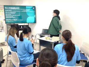 1年生の学科申請を目前に控えて、卒業生による職業ガイダンスを行いました。就職して4年~7年目を迎え、職場の中心として活躍している卒業生6名に来ていただきました。愛玩動物看護師2名、動物園の飼育員1名、訓練士1名、トリマー1名、自然保護管(レンジャー)1名の布陣です。講義の内容としては、現在の仕事の内容、仕事上で大切にしていること、在学中に悩んだことまた、それをどのように解決したのか、インターンシップに臨んでの注意点、等を自分の経験を通して語ってもらいました。九動で学んで、現場に出て、活躍している先輩たちのお話を1年生諸君も真剣に聞いておりました。ガイダンスが終わった後も時間の許す限り質問に答えていただきました。1年生も先輩たちに熱心に色々と疑問点を質問しておりました。1年生諸君にとって、とても有意義な時間となりました。卒業生の皆さん!ありがとうございました!感謝です。